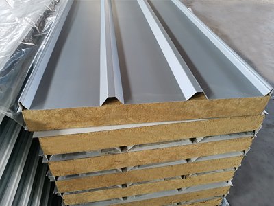彩鋼巖棉板其上下表面采用鍍鋅彩色鋼板或鍍鋁鋅彩色鋼板,厚度為0.4-0.8mm。通過自動化連續(xù)成型機,經(jīng)壓型后用高強粘合劑粘合而成。巖棉塊交錯鋪設(shè),其纖維走向垂直于彩鋼巖棉夾芯板的上下表面,并緊密相接充實了彩鋼巖棉板的整個縱橫截面。巖棉塊之間和域名與上、下層鋼板之間通過高強度發(fā)泡劑粘接復(fù)合而成。彩鋼巖棉板有很強的剛度,具有防火、保溫、隔音等性能。